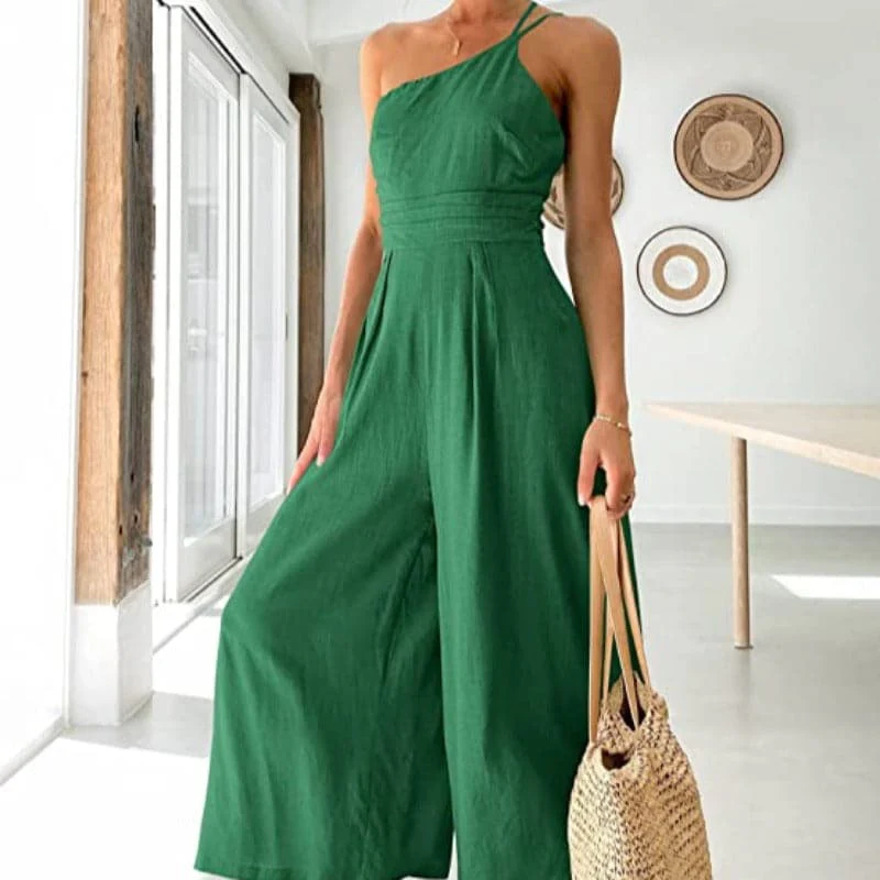 -70%Women's Jumpsuit - One-Shoulder Design - Tailored Fit - Wide Legs - Elegant & Comfortable—