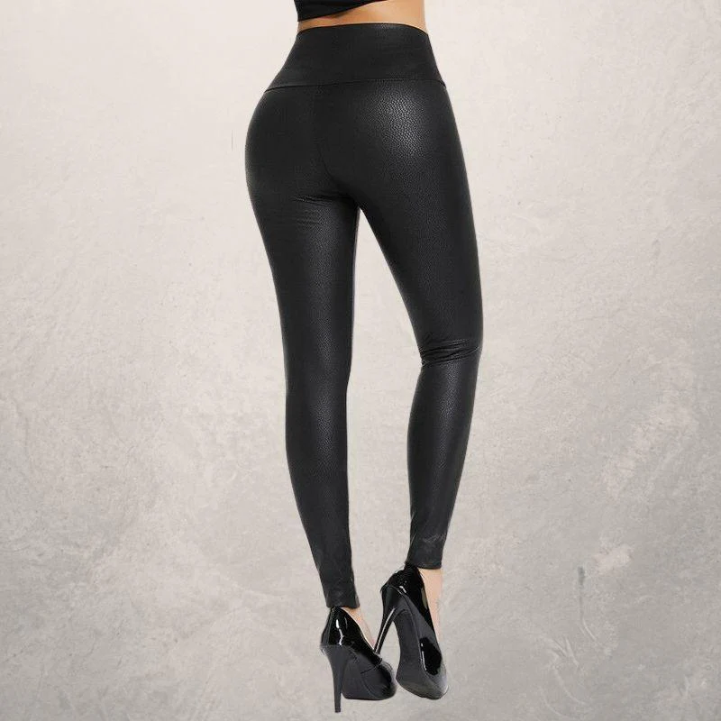 Women's Leggings - High-Waisted - Elegant Faux Leather - Slim Fit