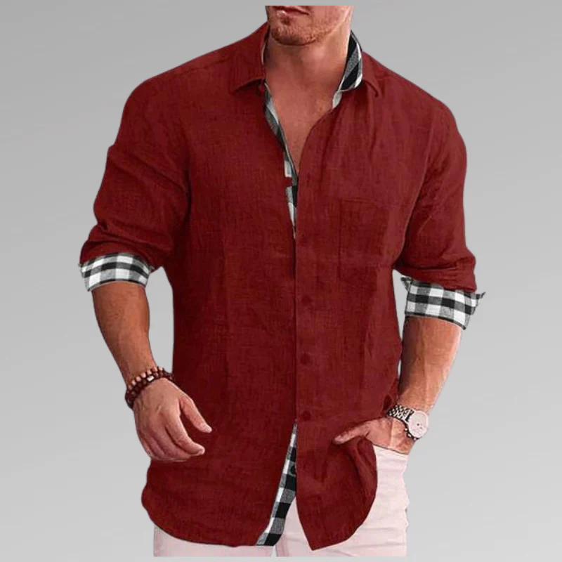 Men's Shirt - Lightweight Fabric - Long Sleeve - Button Closure - Classic Collar - Smart Casual